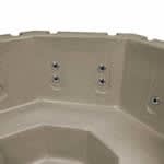 The Evolution is a octagonal hard shell hot tub but still portable enough for hire, being approx 1790mm x 1790mm x 750mm it will fit through the average gateway. Seating 5/6 adults and boasting 11 hydrotherapy jets, LED lighting and a 2hp 2 speed pump.