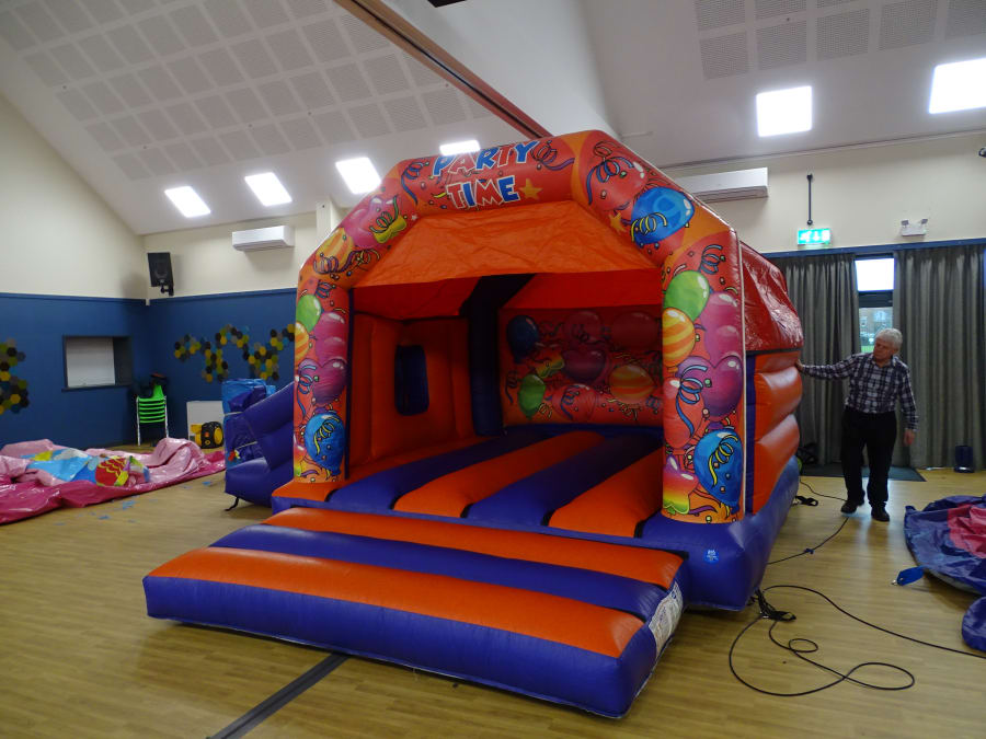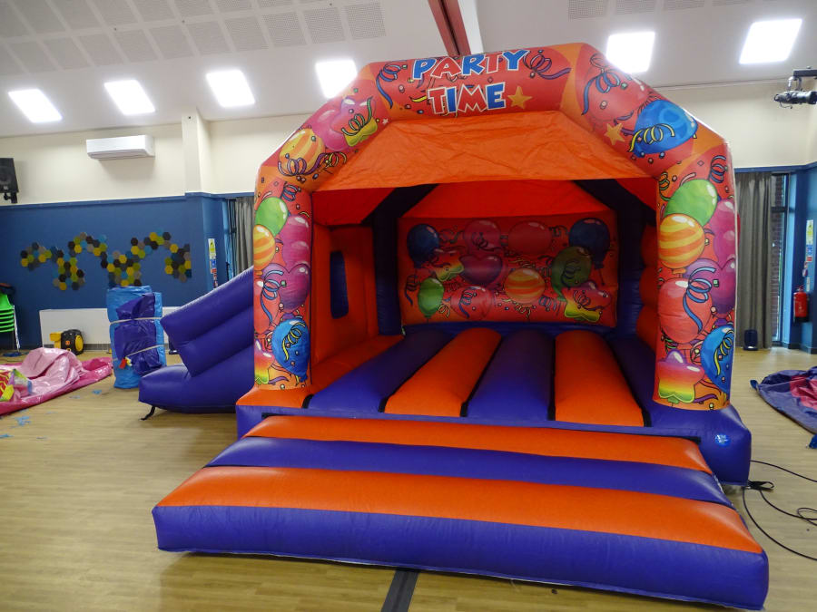Party Bouncy and Slide ... Side Slide ... Good family size , comes with a shower cover. Perfect garden party . Indoor or out door will be sure a massive hit with the kids ..
