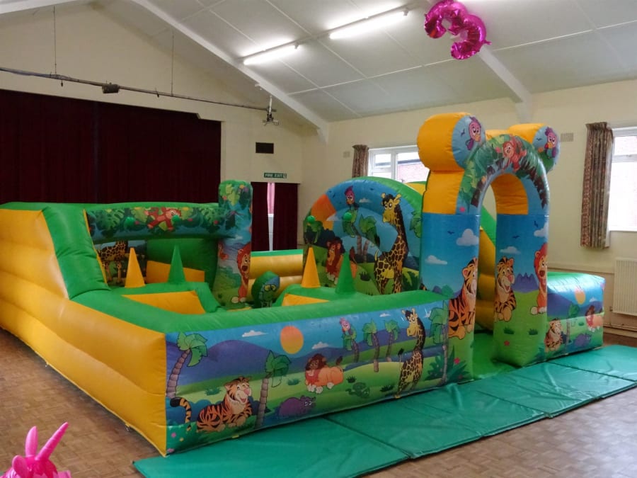 Jungle Play Park is 18 ft x 18ft . will fit in any hall.