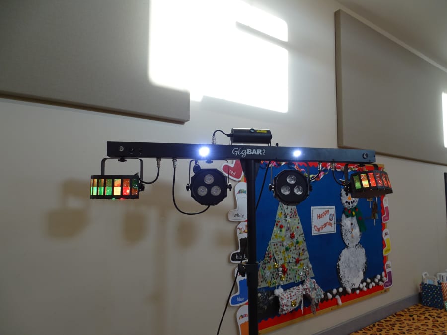 We will come set ready for your party ..**best bit you can blue tooth your custom music **. Lights will dance in time with music... Making this set up perfect for kids party..custom play list for your party.