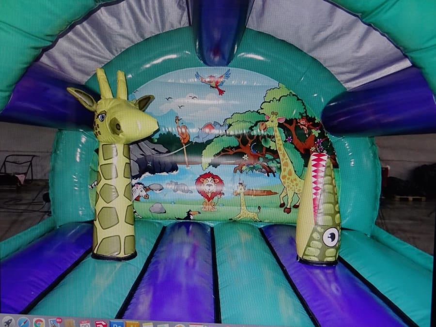 Jungle Activity Bouncer 3D. 13ft x 13ft x 12ft high ..A perfect bouncy castle for you little monkeys ...Fantastic art work ..It is a great castle with rounded corners and netted sides and 3-dimensional biff-bashers on the bed of castle. Also comes with a shower cover, on top of the arch, we also put a stunning 3D Head to provide an even greater wow factor. This castle can be used indoor venues *please check size before booking to make sure this fits. Can also be used outdoor , perfect for a garden party , BBQ , Family, Wedding, Birthday party.