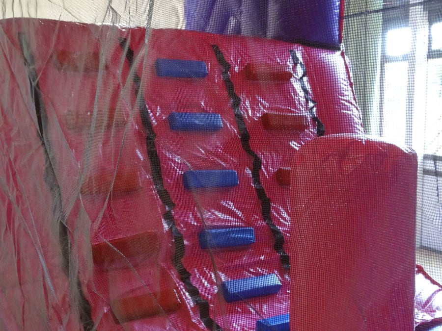 Great art work.. Large Slide, Biff Bash, Dive Holes, Block Steps, Netted Sides for easy viewing. Comes with a shower cover..