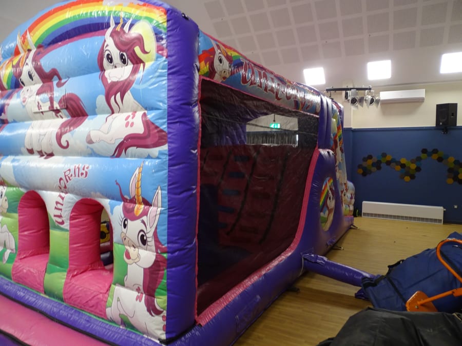 Unicorn Fun Run Assault Course ...It's all about the Unicorn ... A fantastic indoor or garden hire . Perfect for a large party.