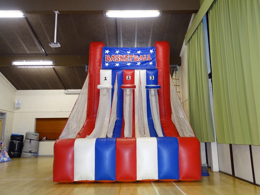Basket Ball Shoot USA ..3 lane shoot .. A great family fun game Perfect for a family garden party hire . Harder than it looks .. big and tall . All the fun of the fair ..but in your garden .
