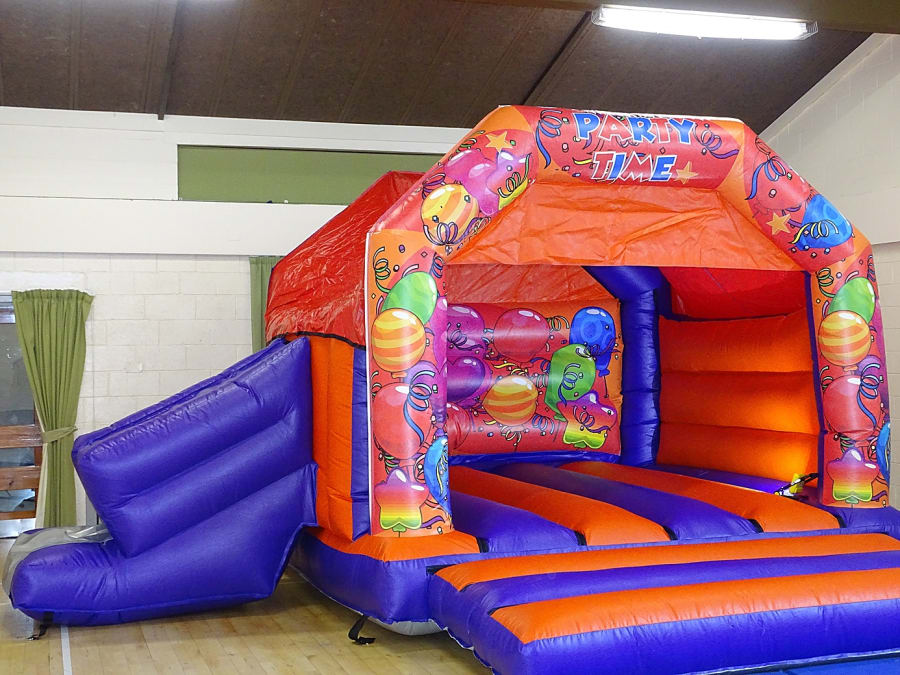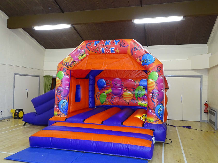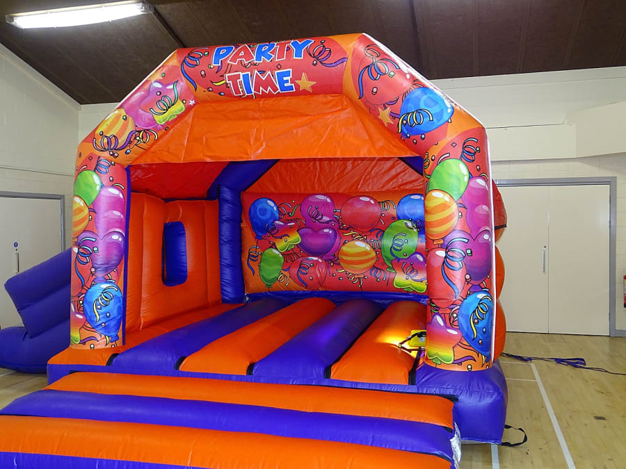 Party Bouncy and Slide ... Side Slide ... Good family size , comes with a shower cover. Perfect garden party . Indoor or out door will be sure a massive hit with the kids ..
