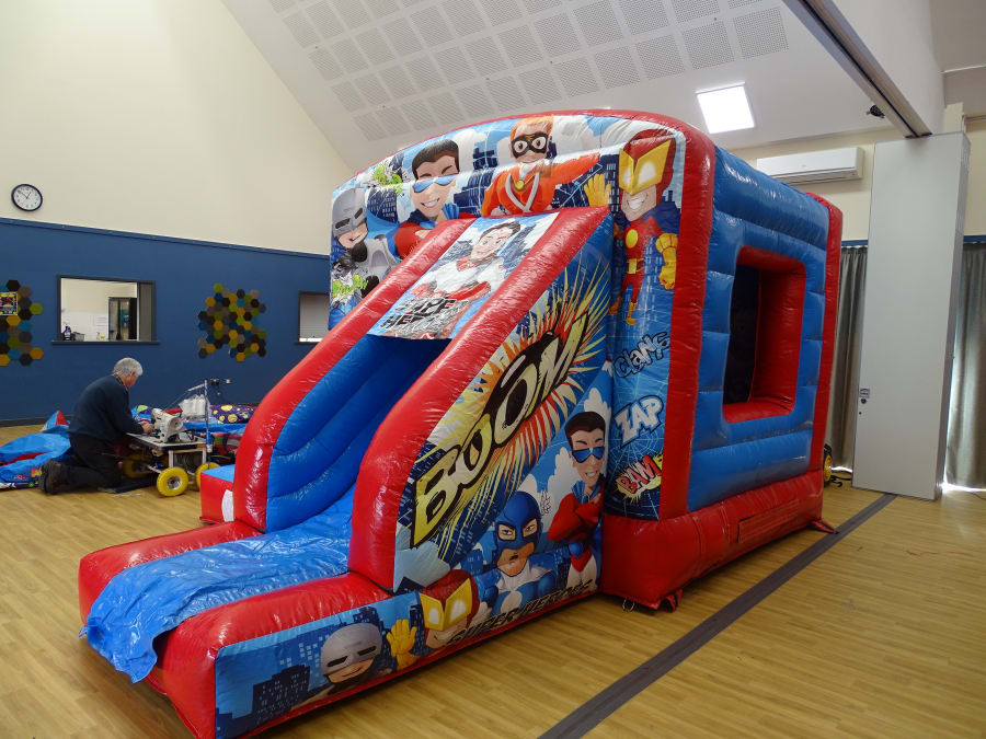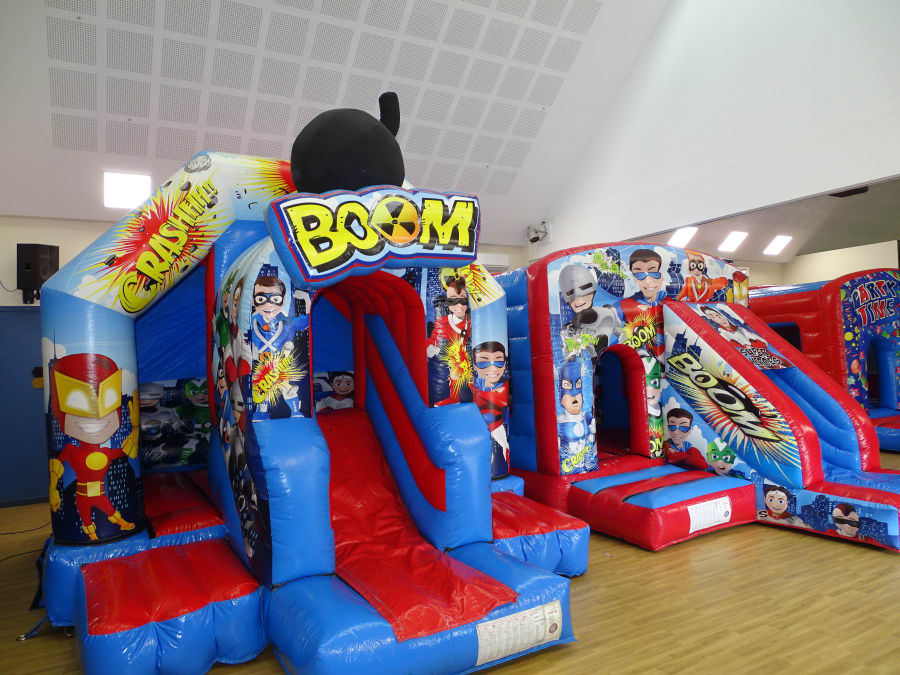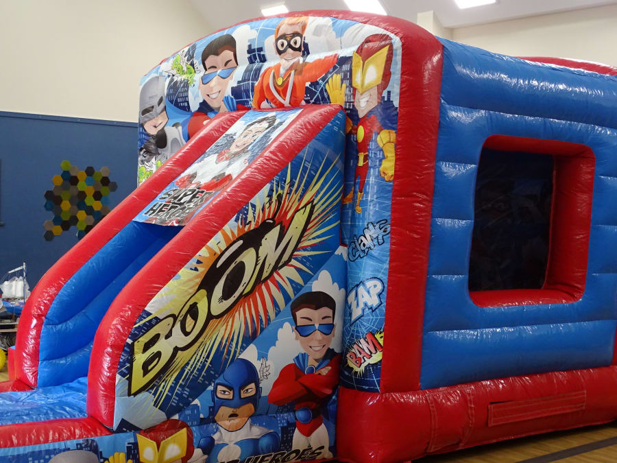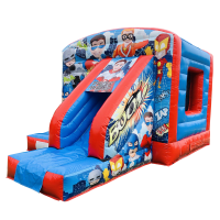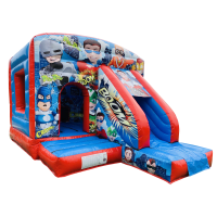 This combo castle is a great choice for a "Super Hero Party " ..Perfect for a garden hire or indoor villager hall hire ..Guaranteed fun with this ..Large bouncy area plus 4 ft slide out.