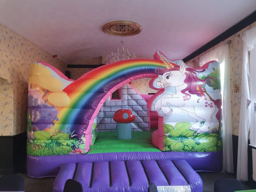 The slides roof features a special viewing tower for the little ones to get excited over and despite this, only measures at a modest 11ft yet making it perfect for indoor hire. The Unicorn artwork theme really is amazing and gives an extra vibrant feel to all other items in its class. The vibrant unicorn artwork is very realistic and absolutely fantastic quality, ensuring this inflatable slide is perfect to make your little one's big day