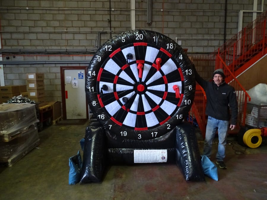 FULL SIZE ..Inflatable Darts ..9ft high ! Indoor or outdoor Family party hire ..suitable for all ages using velcro darts ...See if you can get "180 !!" Perfect School fate / Prize giving / Garden party hire / Extra fun.