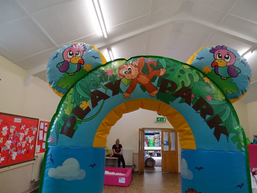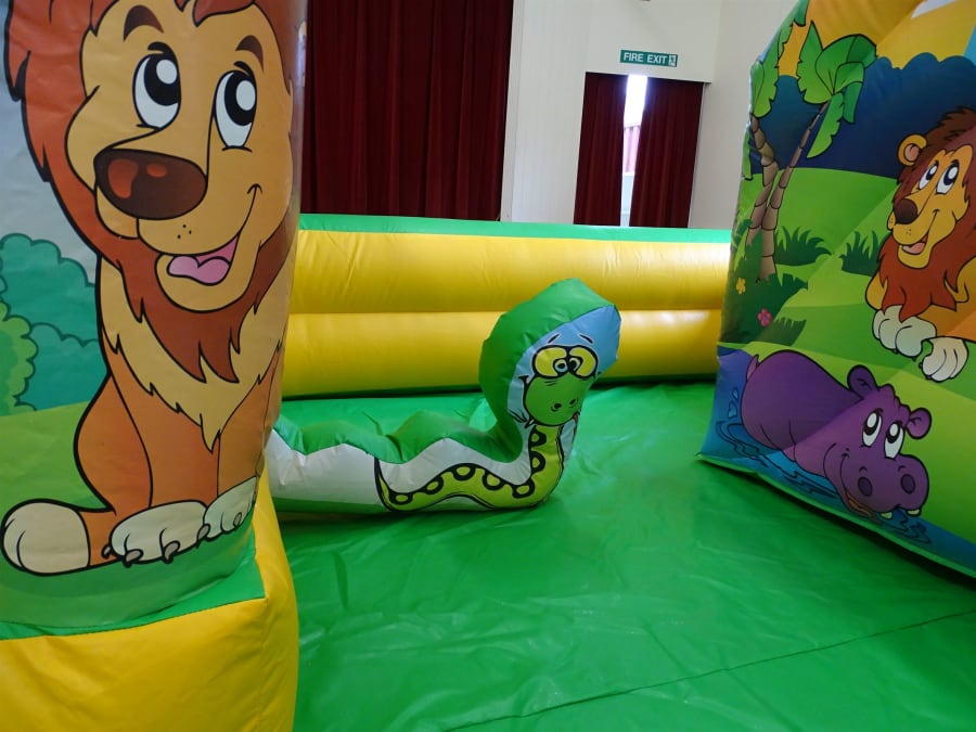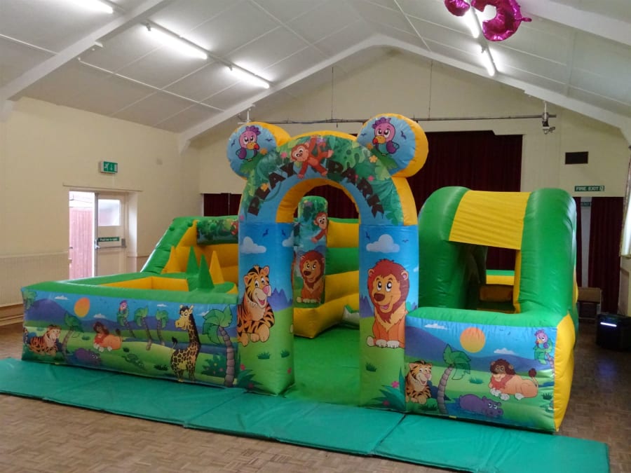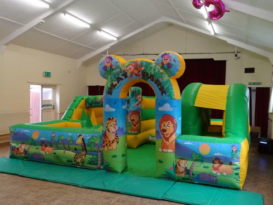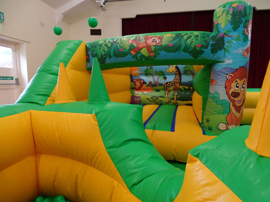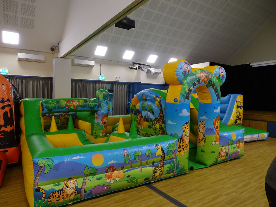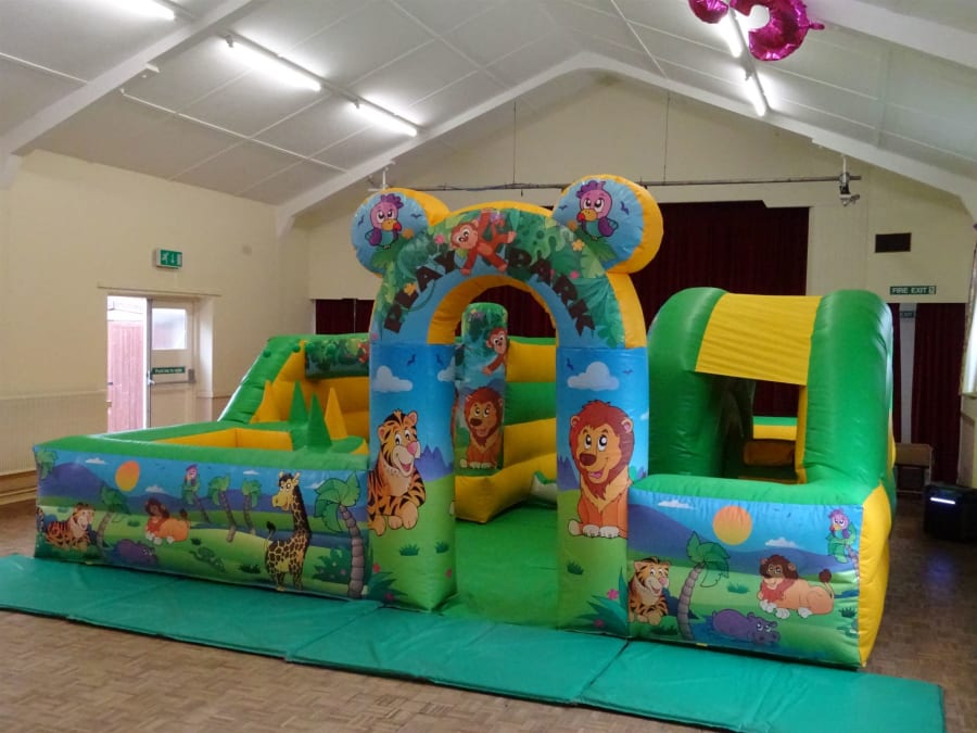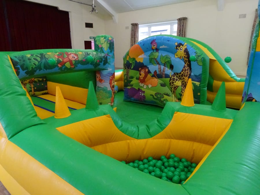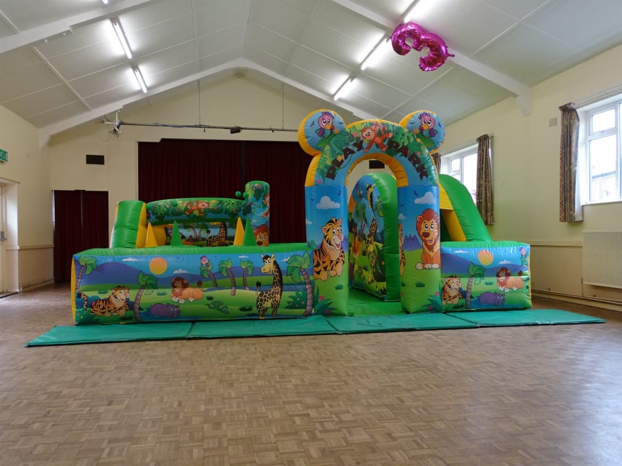 Jungle Play Park is 18 ft x 18ft . will fit in any hall.