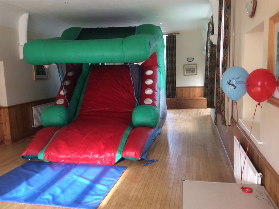 Fits perfect indoor most local village halls . Can be hired indoor or outdoor for summer fun .