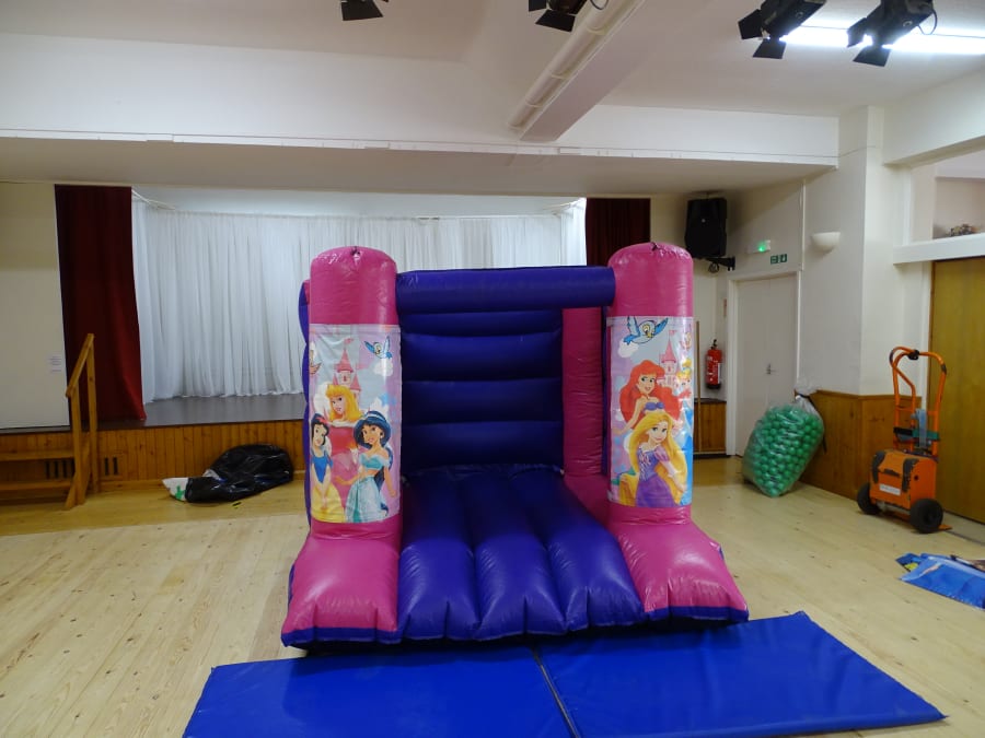 Princess mini bouncy castle ..Great value hire ..Perfect bouncy castle for a little after school party with 2 close friends ..A small simple summer garden party hire just for your kids..This castle has many options.. due to size 6ft x 6ft x 6.5ft high. Can if in almost any where where space in a premium, This hire can go indoor lounge / conservatory *if big enough. Outdoor garden hire.. A great hire for your first bouncy castle for your little ones. Age range 1 to 8 years. Great add on to a party with our soft play products.. Perfect for a little corner spot for a christening or wedding. This hire will fit in any hall or indoor venue guaranteed.